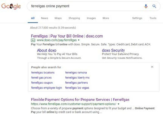 Be warned that if you do an online search for “Ferrellgas online payment,” your results may include third-party payment processors that are not affiliated with Ferrellgas. In most instances, typically in the form of paid advertising, these payment processors will gladly process your payment for a fee. Additionally, payments made through these payment processors may be delayed anywhere from two to five days.