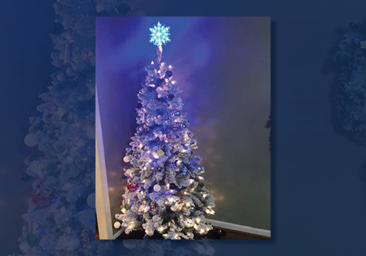 Ali says that growing up, holidays were filled with family, laughter, and the amazing smell and taste of her grandmother’s incredible potato pancakes! “It was always such an exciting time,” said Ali. “Family from near and far gathered and reminisced about all the exciting events and milestones that happened throughout the year!” Over the past 6-7 years, though, many of Ali’s family members have moved to other parts of the country, making it more difficult to get together for the holidays. In 2018, Ali also moved and got married! “My husband and I purchased our first holiday tree. We’ve decorated it every year with blue and white lights and a fun assortment of ornaments. Many are Disney themed!” Ali added, “We still continue our childhood traditions of celebrating with family, laughter, and some amazing potato pancakes!”